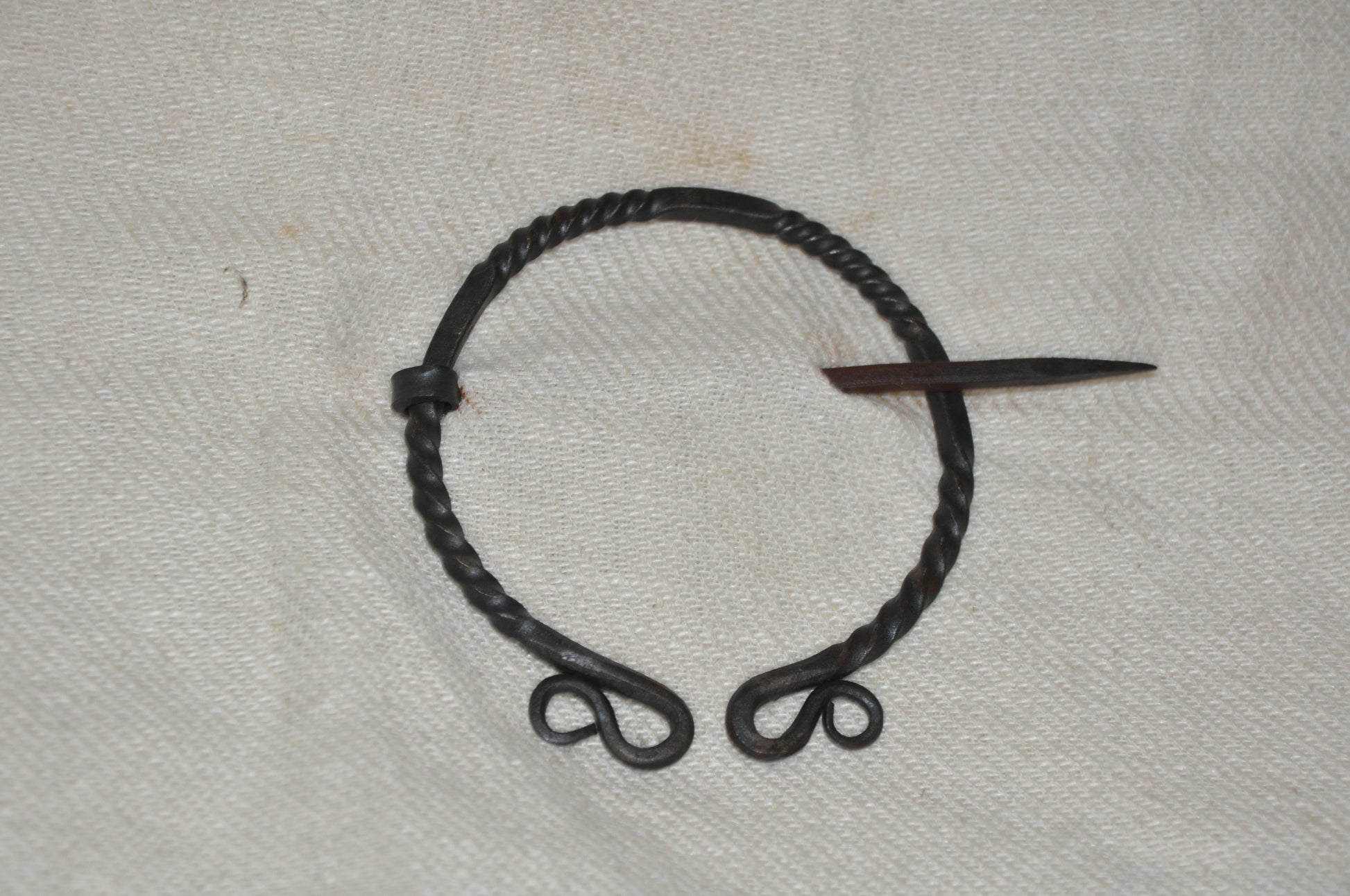 Diese Ringfibel mit tordierter (gedrehter) Form und doppelt eingerollten Enden ist eine historische Nachbildung, inspiriert von archäologischen Fundformen des europäischen Früh- und Hochmittelalters. Ringfibeln dienten dazu, Gewänder, Umhänge, Tuniken oder andere Textilien sicher zu verschließen und zugleich als dekorative Details getragen zu werden.