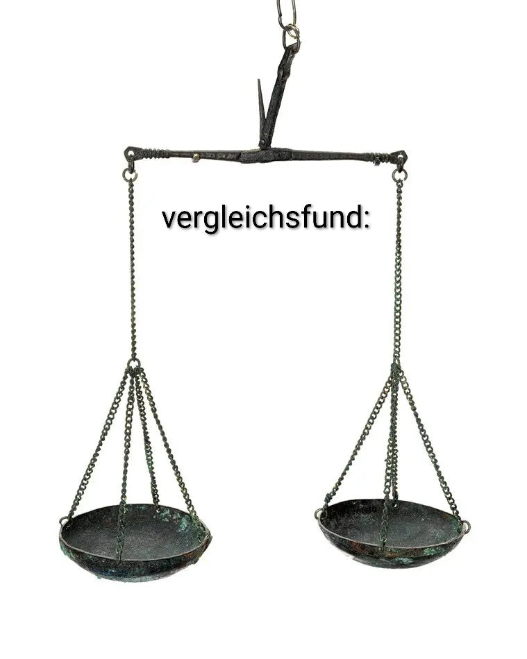 Diese moderne Umsetzung orientiert sich allgemein an solchen historischen Waagentypen und deren Funktion, stellt jedoch keine exakte 1:1-Replik eines einzelnen Museumsfundes dar.